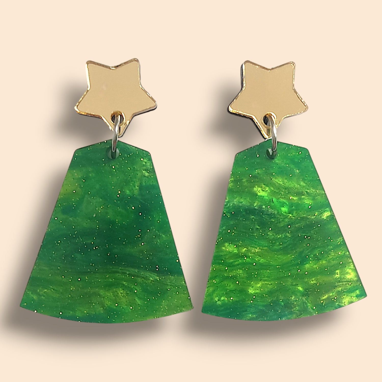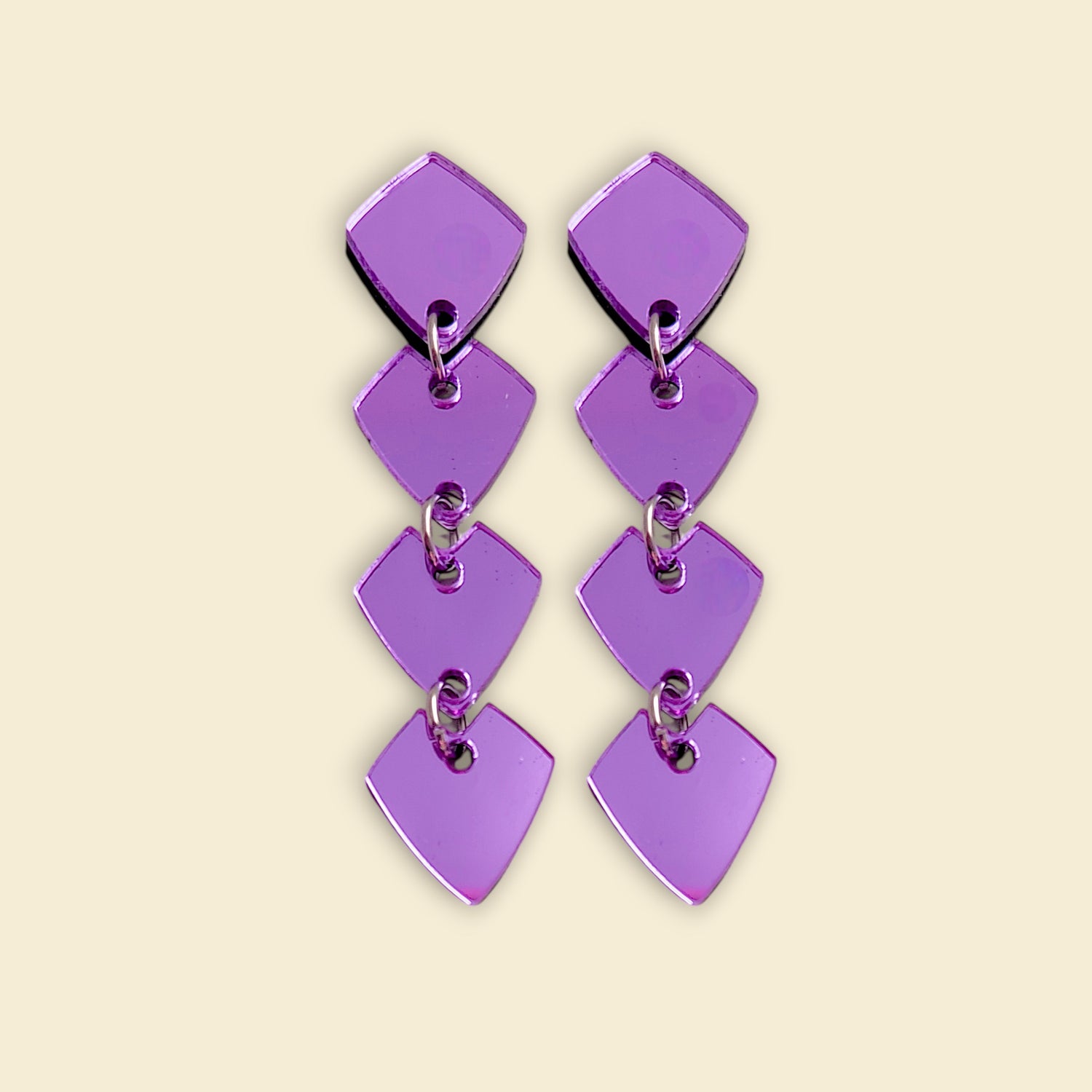 Diseños geométricos, brillo espejo, mucho dorado y plata. Pendientes grandes y ligeros....