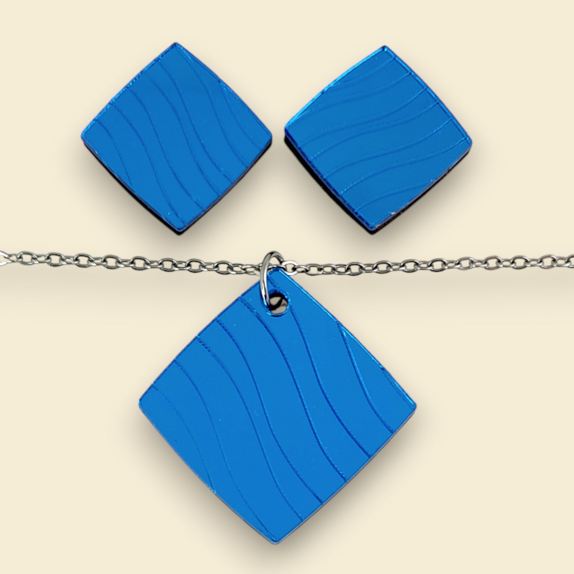Colores: Espejo AZUL CLARO, cadena de acero 40cm.
