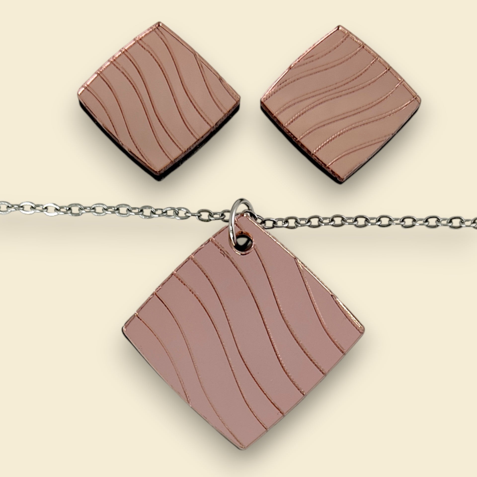 Colores: Espejo en color oro rosa, cadena de acero 40cm.